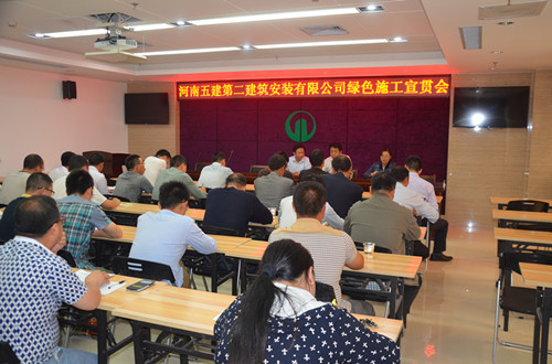 2015年5月26日下午15時,河南五建第二建筑安裝有限公司綠色施工宣貫會正式開始,本次會議由各項目部項目經(jīng)理、技術(shù)負責人以及公司工程部全體人員共計30余人參加。