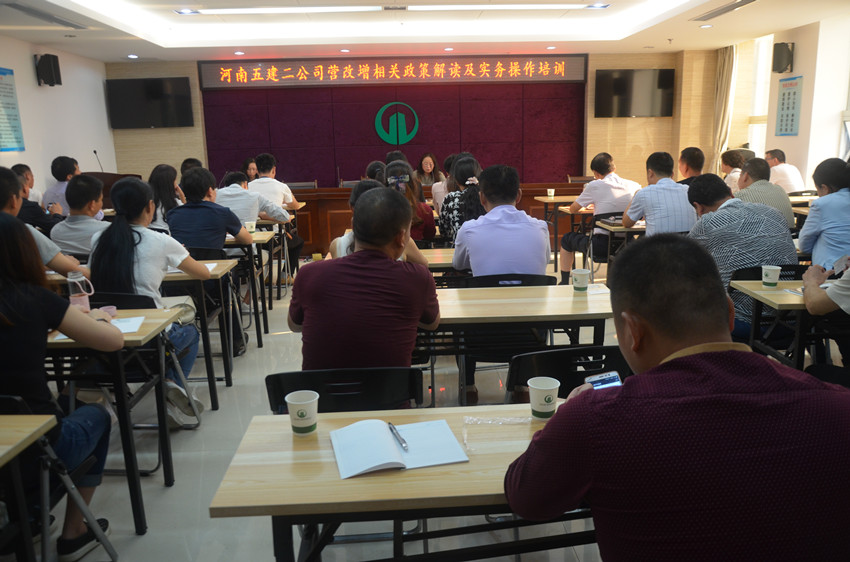 9月11日,公司舉辦了營改增相關(guān)政策解讀及實(shí)務(wù)操作專業(yè)培訓(xùn)。此次培訓(xùn),公司特邀信陽市興華稅務(wù)師事務(wù)所所長、注冊(cè)稅務(wù)師章雯老師進(jìn)行專題講解,公司項(xiàng)目經(jīng)理、項(xiàng)目財(cái)務(wù)人員及機(jī)關(guān)部室相關(guān)人員近百人參加了培訓(xùn)。