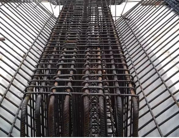 4、 豎向鋼筋彎勾朝向柱子內側;