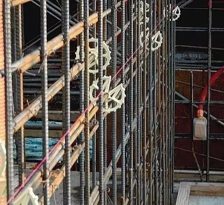 2、 底部采用水泥墊塊或碎大理石墊塊,側面采用塑料或其它墊塊,控制保護層厚度;