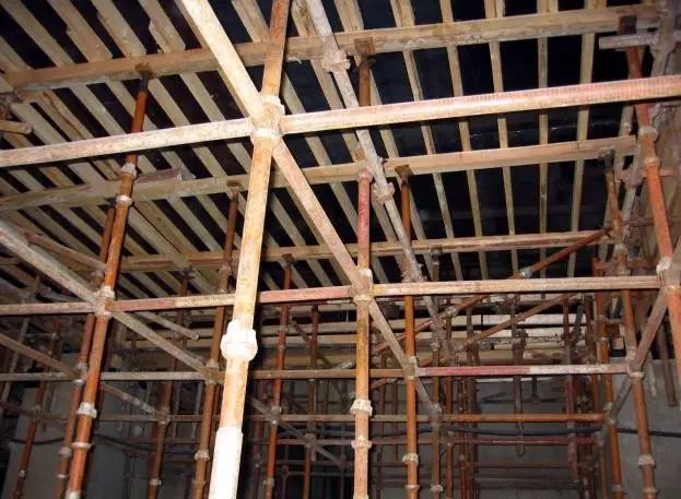 4、 支設立桿時,為防止把下層樓面混凝土壓傷,立桿底部必須墊方木墊塊;
