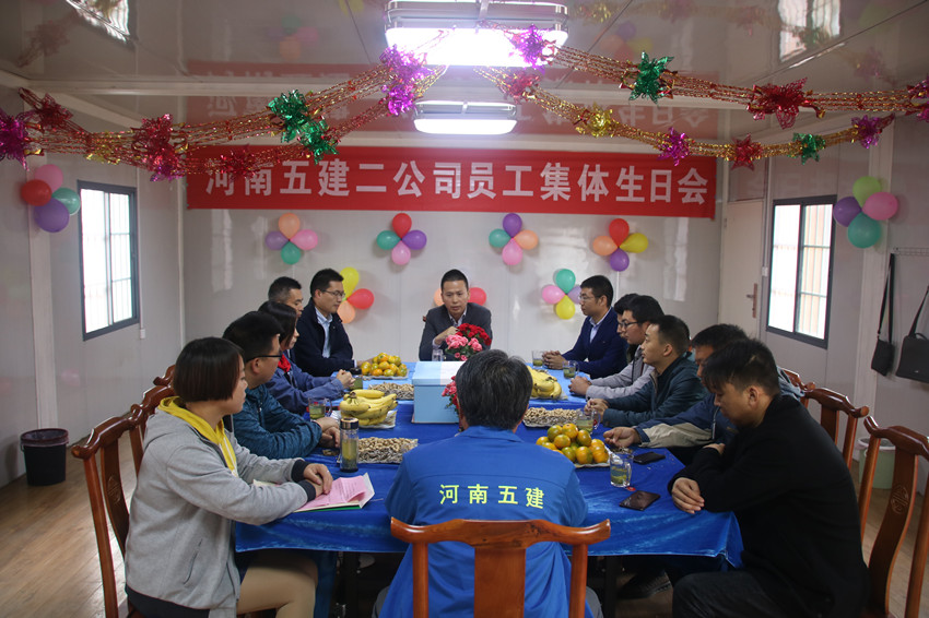 舉辦集體生日會(huì)能夠促進(jìn)公司團(tuán)隊(duì)凝聚力,增加員工的歸屬感,推動(dòng)公司企業(yè)文化建設(shè)。未來,公司還將積極開展形式多樣、內(nèi)涵廣泛的集體活動(dòng),進(jìn)一步增進(jìn)員工之間的感情,體現(xiàn)企業(yè)的人文關(guān)懷,努力讓每一位員工都能感受到五建大家庭的溫暖,從而鼓勵(lì)大家努力拼搏,齊心協(xié)力同企業(yè)一起成長(zhǎng)。