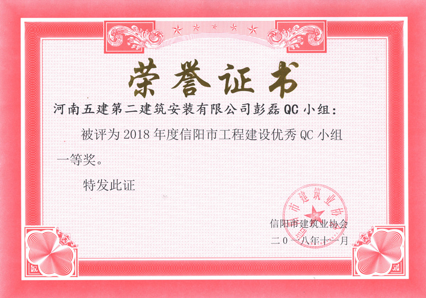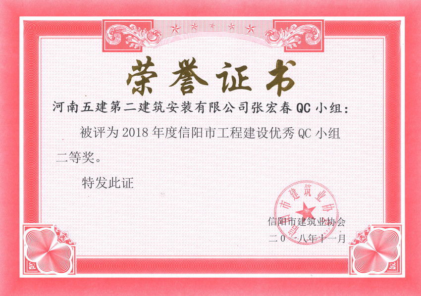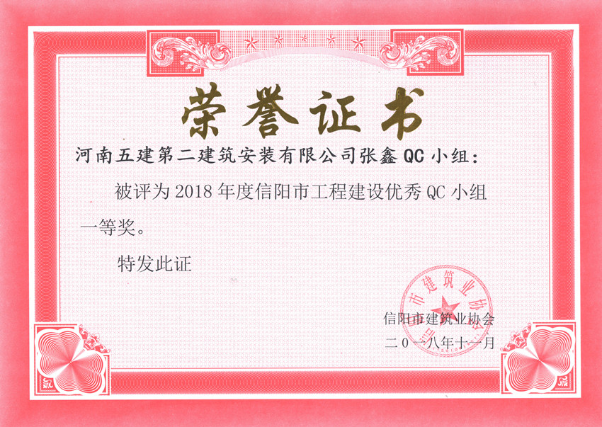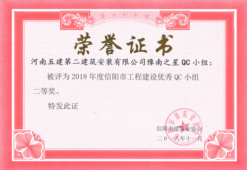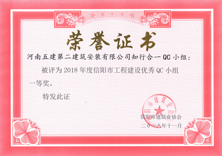 ▲公司被評為2018年度信陽市工程建設(shè)QC小組活動優(yōu)秀企業(yè)