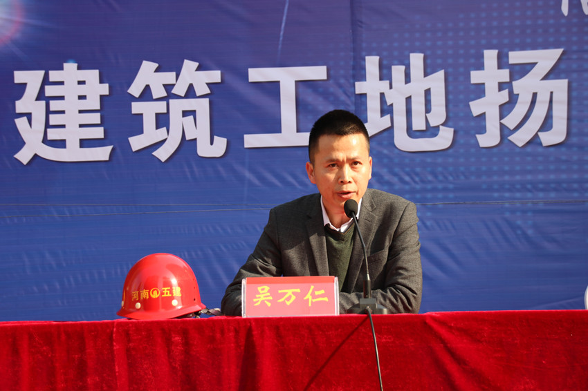 3月13日上午,信陽市中心城區(qū)建筑工地?fù)P塵管控整改工作觀摩會(huì)在我公司泰陽辰項(xiàng)目施工現(xiàn)場召開。市攻堅(jiān)辦指揮部辦公室副主任張亞斌、市控塵專班巡查組組長王法舉、高新區(qū)控塵專班主任陳偉、市城管局渣土辦主任張傳軍、市住建局建管科科長鄒存亮、公司董事長、總經(jīng)理吳萬仁等領(lǐng)導(dǎo)出席會(huì)議,市環(huán)境污染防治攻堅(jiān)辦、市城市管理局及浉河區(qū)、羊山新區(qū)、高新區(qū)污染防治攻堅(jiān)辦負(fù)責(zé)同志以及各施工企業(yè)代表參加了觀摩會(huì)。