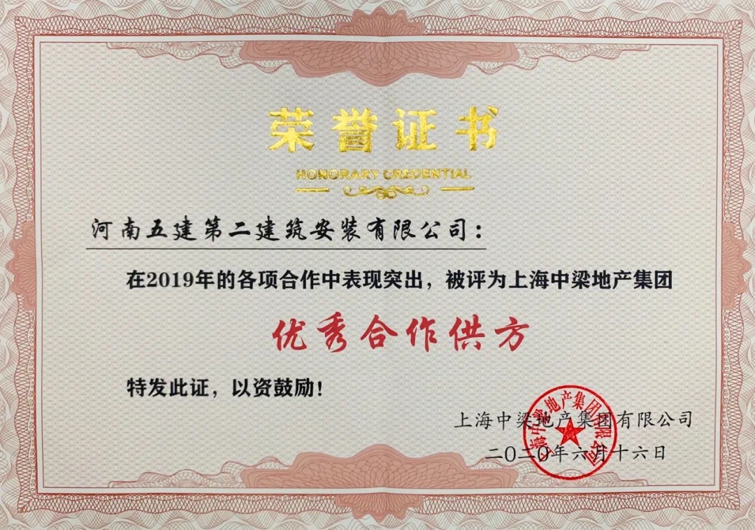 公司榮獲上海中梁地產(chǎn)集團(tuán)優(yōu)秀合作供方獎