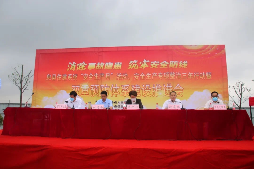 6月18日,息縣建筑領(lǐng)域“安全生產(chǎn)月”活動、安全生產(chǎn)專項整治三年行動暨雙重預(yù)防體系建設(shè)推進會在我公司承建的息縣紀(jì)委廉政教育基地項目順利召開,息縣人民政府副縣長余珂佳、住建局黨組書記、局長謝克剛、應(yīng)急管理局黨組書記、局長盧峰參加會議,會議由縣政府辦副主任楊加宇主持。息縣相關(guān)單位負(fù)責(zé)人、縣城區(qū)三級以上(含三級)房屋建筑施工企業(yè)主要負(fù)責(zé)人及縣城區(qū)在建房屋建筑工地項目經(jīng)理、項目總監(jiān)等一百六十余人參加了會議。