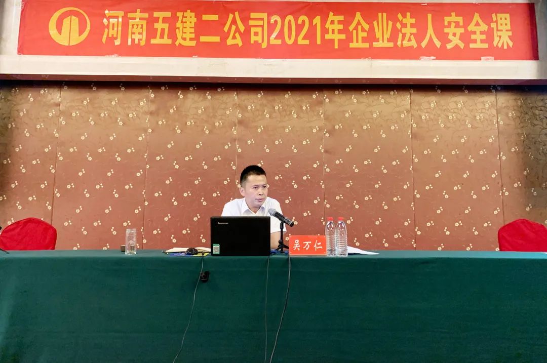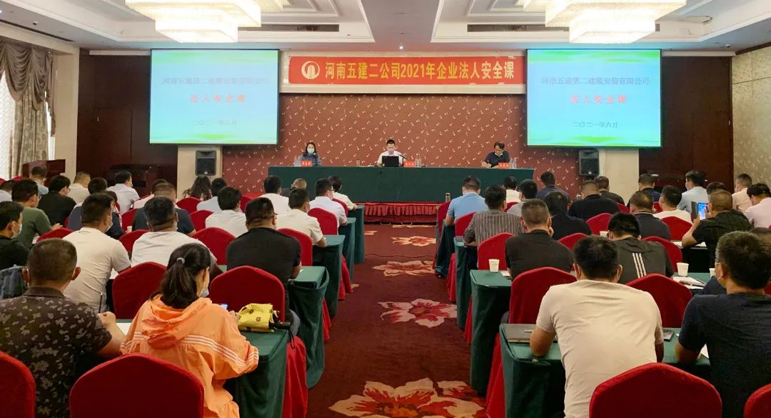 為全面深入開展第20個(gè)全國“安全生產(chǎn)月”活動(dòng),日前, 河南五建二公司在中樂百花酒店三樓會(huì)議廳舉辦了2021年企業(yè)法人安全課,公司董事長、總經(jīng)理吳萬仁以法人代表的身份親自授課。公司董事會(huì)、經(jīng)理班子成員、各部門、二級(jí)機(jī)構(gòu)負(fù)責(zé)人及各項(xiàng)目部項(xiàng)目經(jīng)理、技術(shù)負(fù)責(zé)人、專職安全管理人員等共一百余人參加了課程。